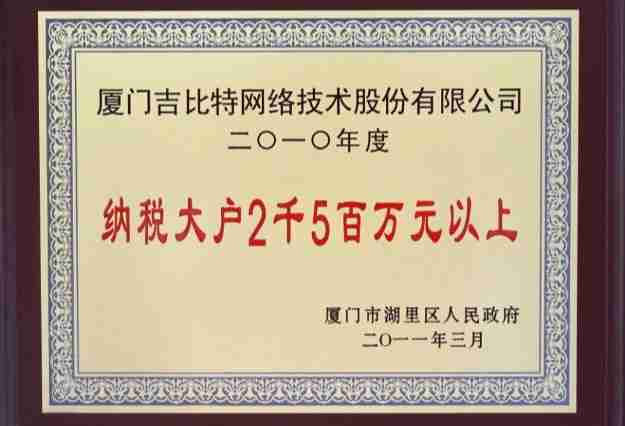 日前,,,公司被厦门市湖里区人民政府授予了“2010年纳税大户”的荣誉称号,,,充分体现了公司一贯合法纳税、、诚信经营的良好企业社会公民行为。。。